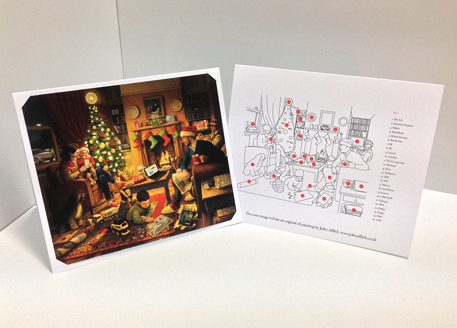 The painting was photographed and reproduced for the card, while the original hangs in the agency at Christmas.