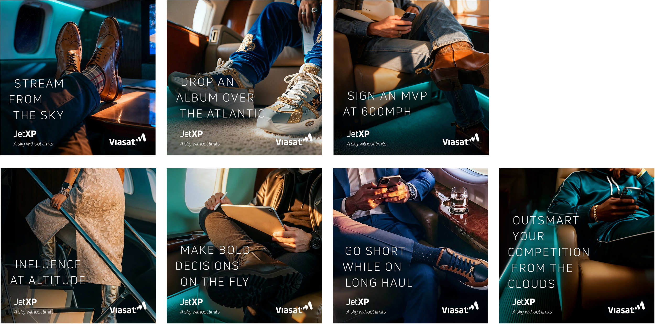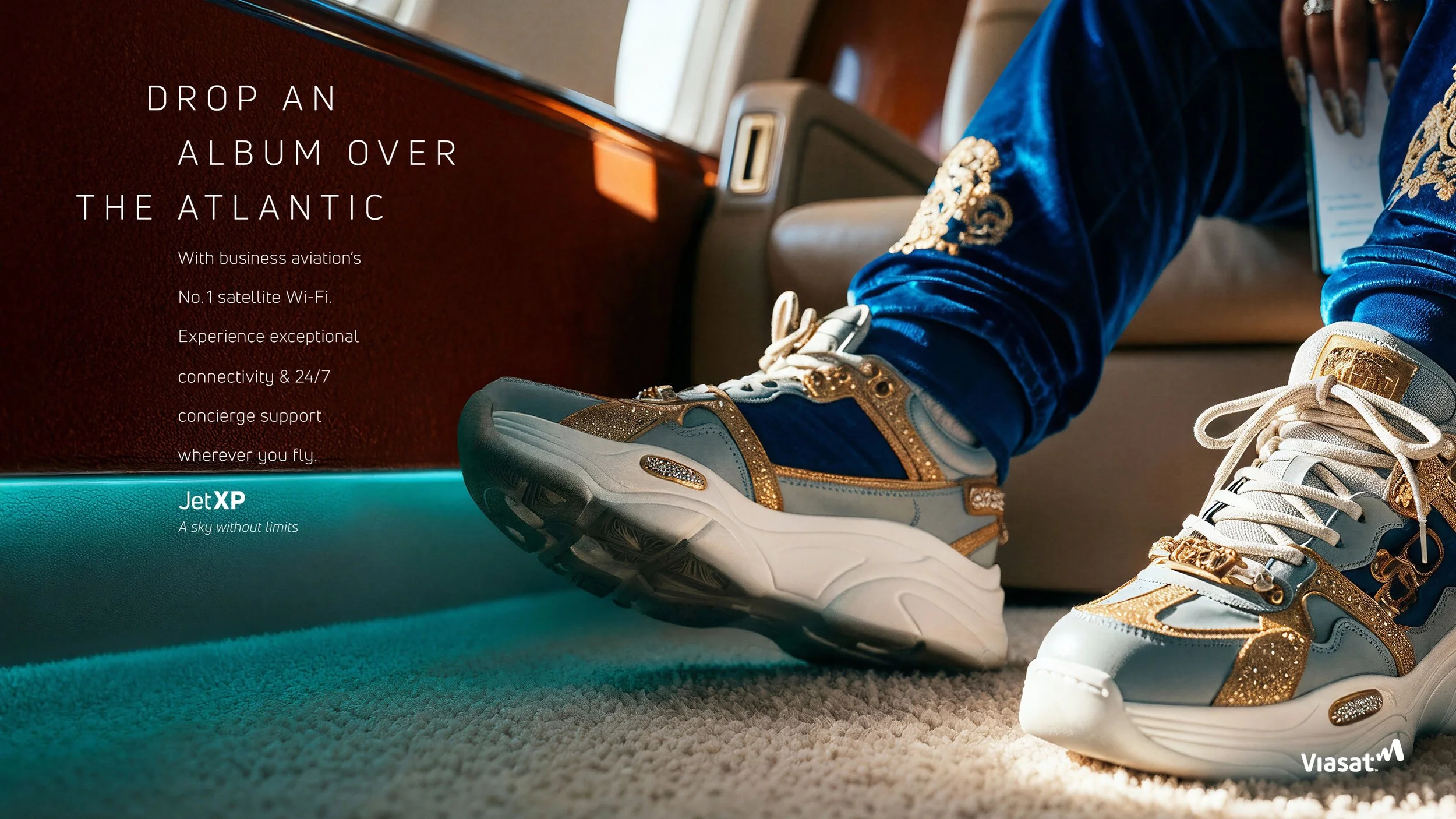 As creative directors on the Viasat account, we oversaw the creation of the brand’s first fully AI-generated campaign for JetXP (WiFi for private jets). The campaign consisted of a 45-second film and a series of KVs that ran across social, OOH and print. The art direction of the campaign plays into the private and luxurious world of the super rich, while the characters are based on real audience personas.